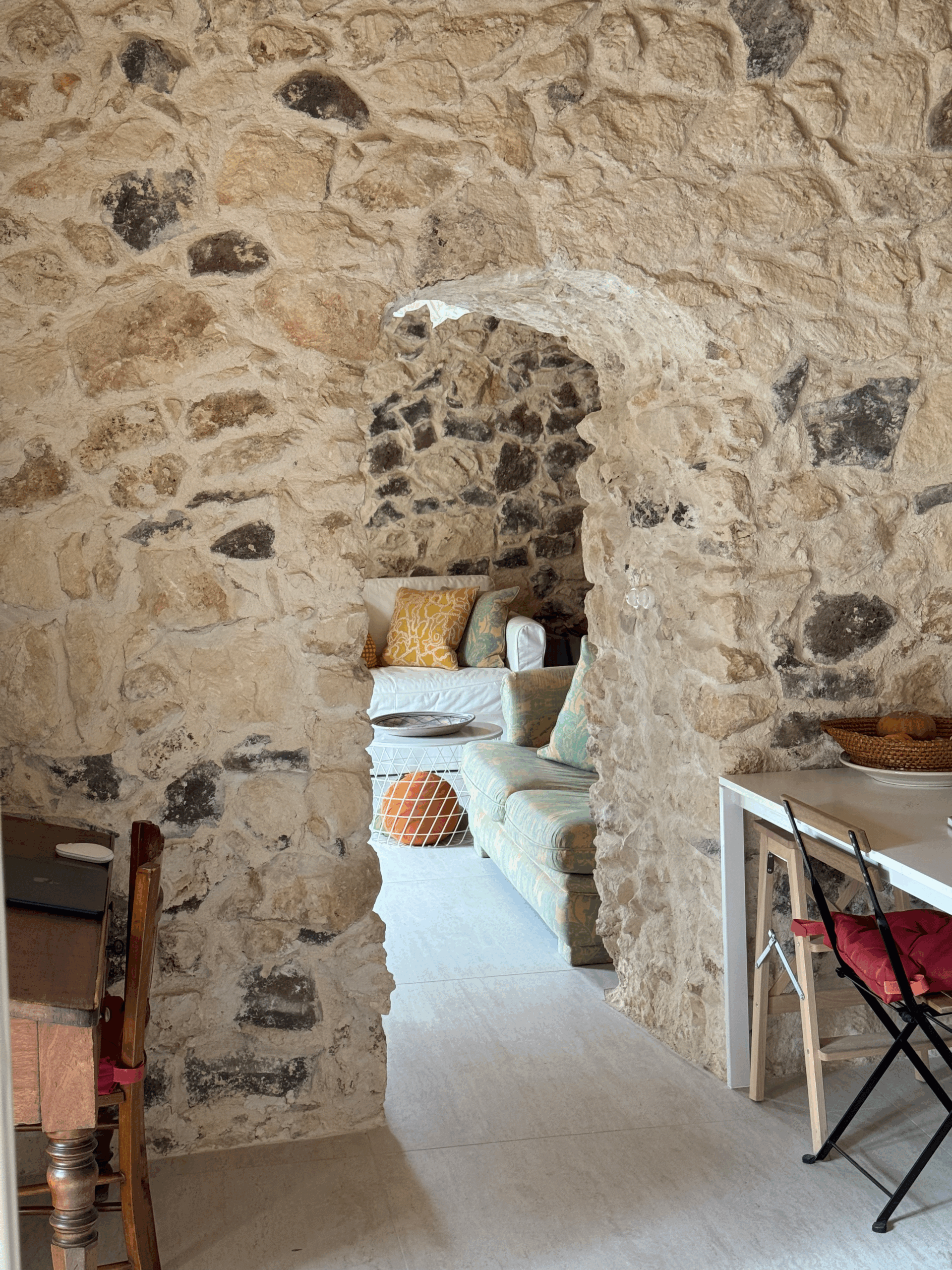 Une terrasse pour écrire, lire, méditer, et d’autres espaces inspirants dans l’oliveraie ou près de la grotte, discrètement nichée sur les côteaux